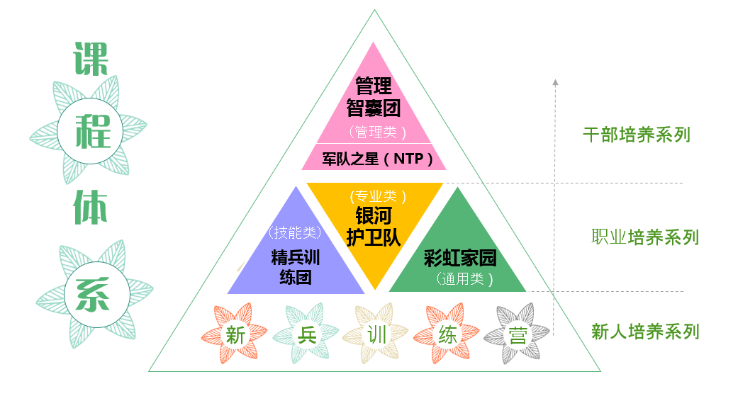 一般为一个学生同时安排3名不同分工人员跟进与陪伴,从不同角度对其提供辅导。 a) 直接上级:对实际工作提供指导。提升其观察、思考问题的高度。所属部门的相关负责人。 b) 职业发展专业人士:提供成长方面专业的咨询。人力资源部的成长跟踪计划相关同事。 c) 同伴群(师兄/师姐):“刚学会开车的人教开车特别有针对性。”由之前校招成长性较好的同事,为传帮带的同岗位的熟手同事,交流学习经验。
